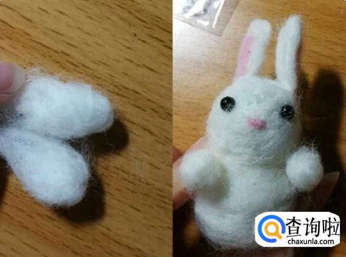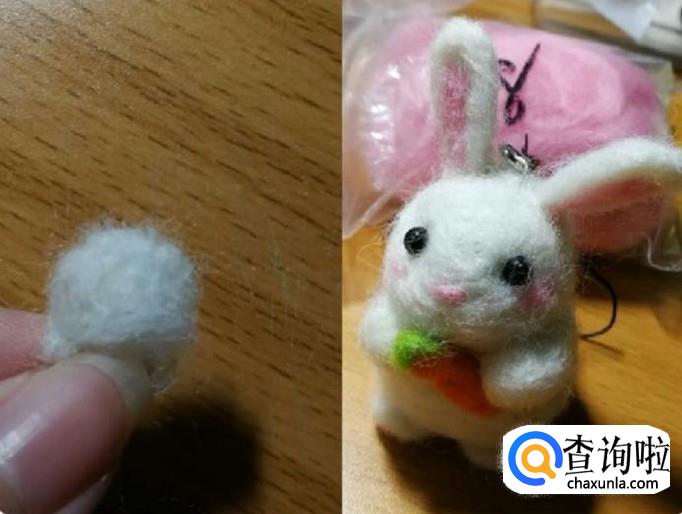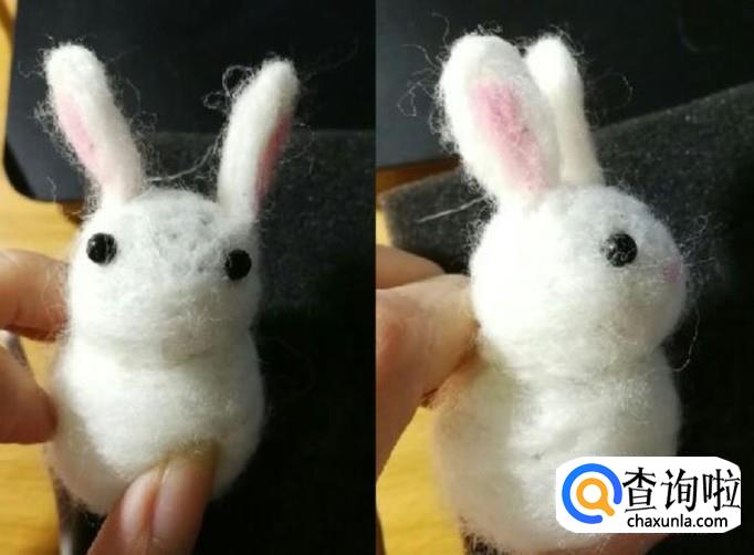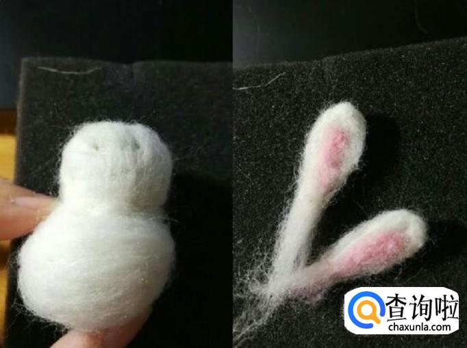 兔子的身子,大针戳用白色羊毛戳两个球,一大一小,小的作为头,大的是身子,然后把两个戳在一起,再包裹一层白色,接着戳,戳成全部白色。
