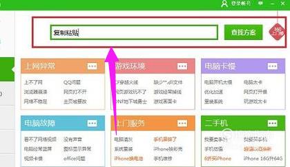 在人工服务页面里的搜索框里输入“复制粘贴”后进行查找,如下图所示。