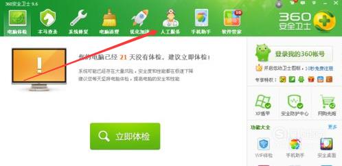 下面以360安全卫士为例,打开360安全卫士后选择“人工服务”,如下图所示。