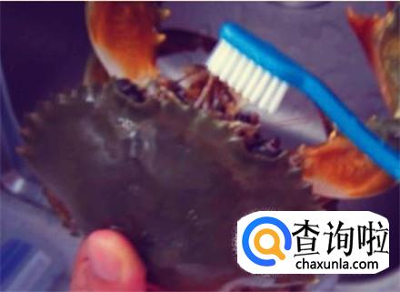 青蟹放进清水里养一个小时,然后用刷子把青蟹的爪子以及前后壳全部刷洗一遍,再次清洗干净。