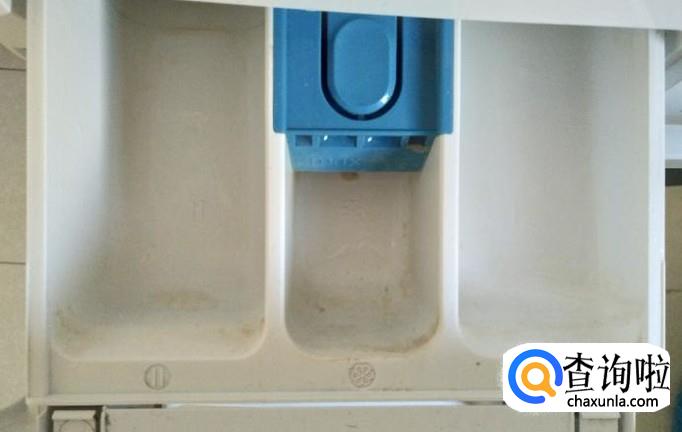 找到后,将它向外拉开,打开后可以发现里面有分开的两个水槽,这里便是投放洗衣液和洗衣粉的地方。