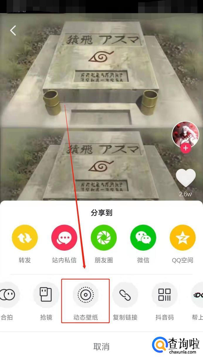 在分享里面找到动态壁纸选项。