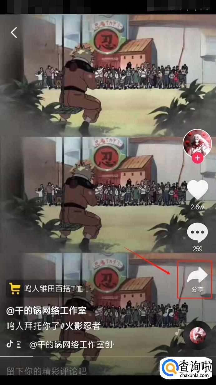 点到喜欢的视频,点击右下角的分享。