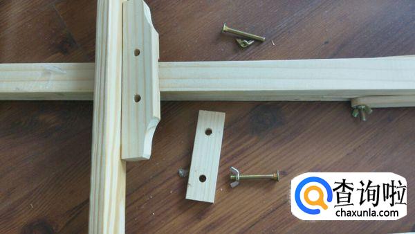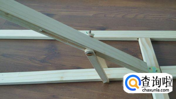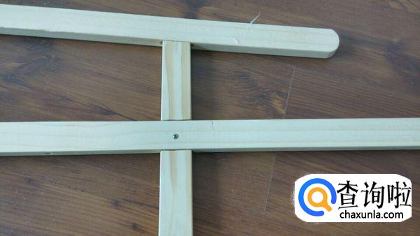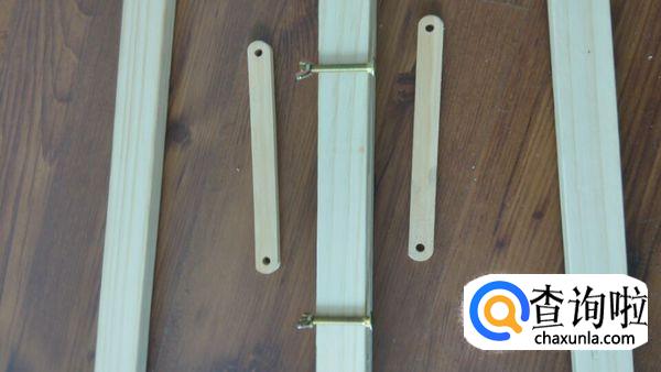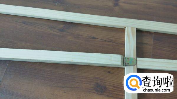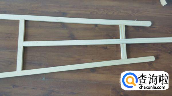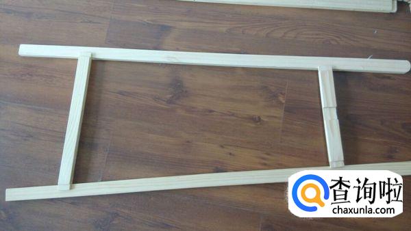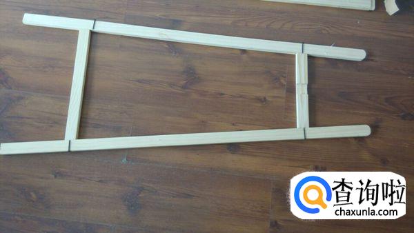先把两长两短四根木条拼凑成这个样子,都有相应的卡槽,上面一个短的横档槽口向上,方便接下来的安装,