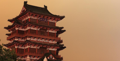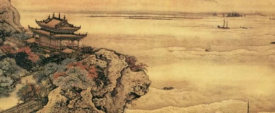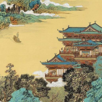 接着从众多名胜中将滕王阁烘托而出——“层台耸翠,上出重霄;飞阁流丹,下临无地”。层层楼台高耸在青翠的山峰上,仿佛直冲云霄;凌空的飞檐丹辉欲流,仿佛直插大地。