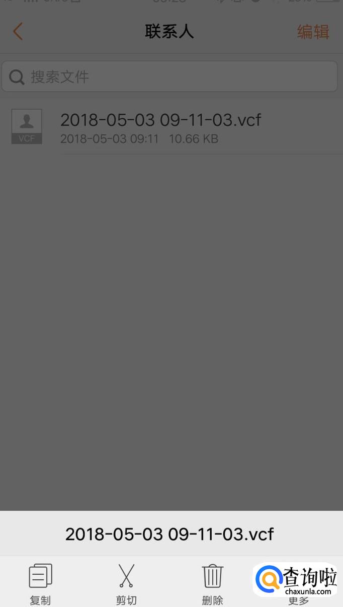 导出完,会生成一个联系人文件,在“文件管理”的“备份”中找到该文件,长按,点击右下角“更多”。