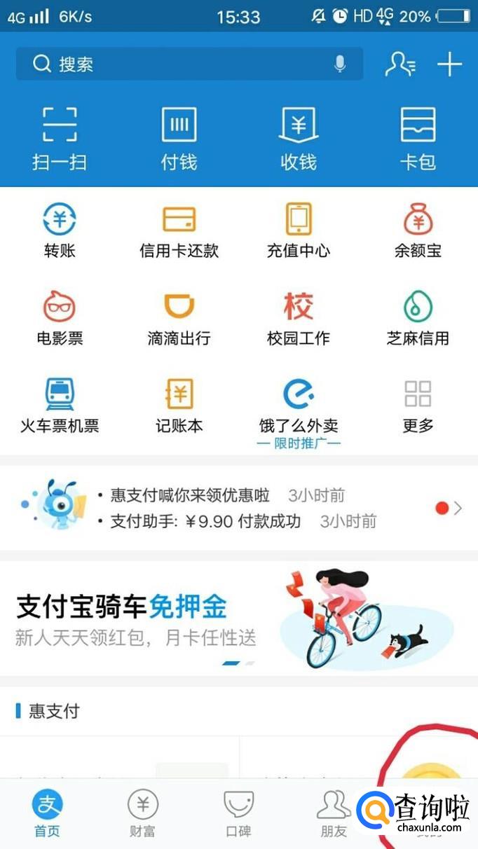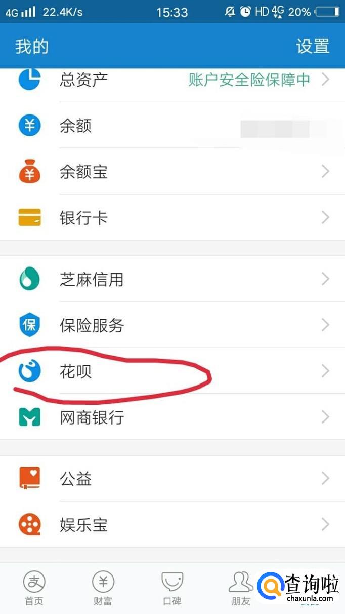 在我的页面中,点击“花呗”。