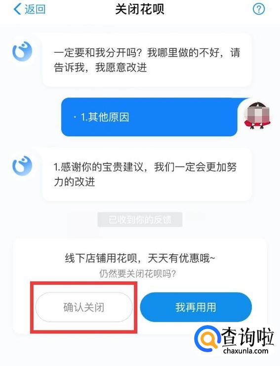点击“确认关闭”即可关闭花呗。