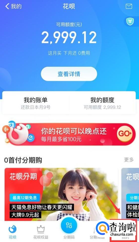 在花呗页面中,点击右下角“我的”。