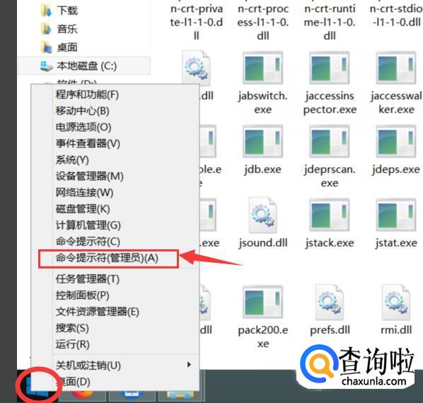 现在我们就可以来测试一下了,鼠标右键菜单后选择“命令提示符(管理员)”,如下图所示。