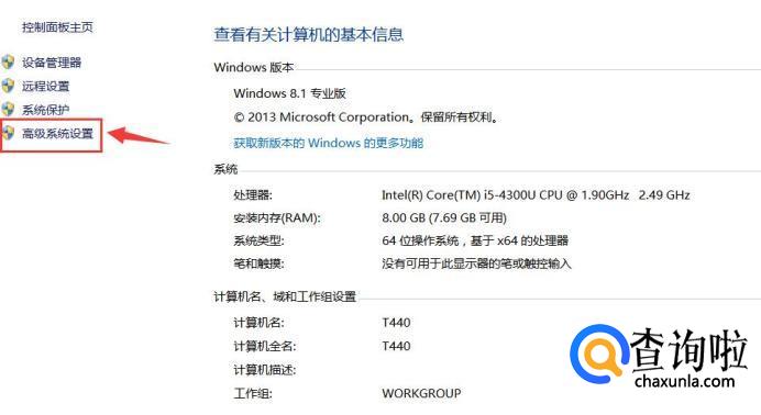 在属性界面选择“高级系统设置”,如下图所示。
