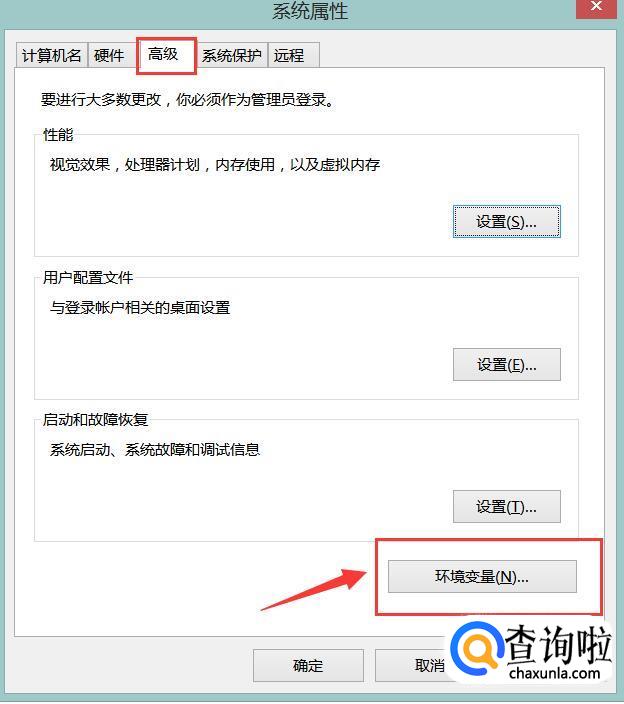 在新弹出的界面里选择“高级”,然后点击“环境变量”,如下图所示。
