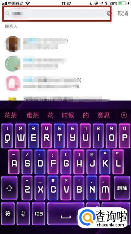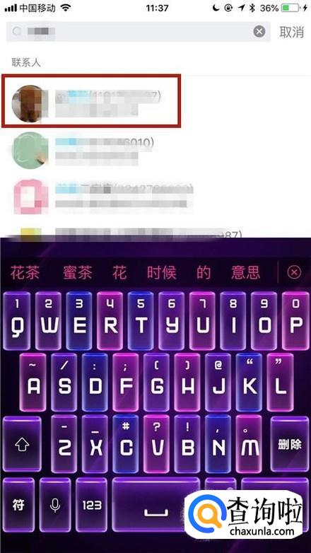 接着输入你要查找聊天记录的好友名称,如下图所示。