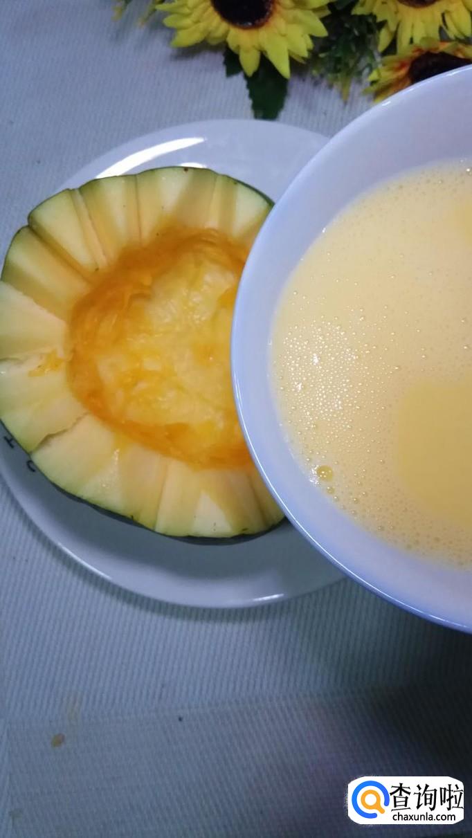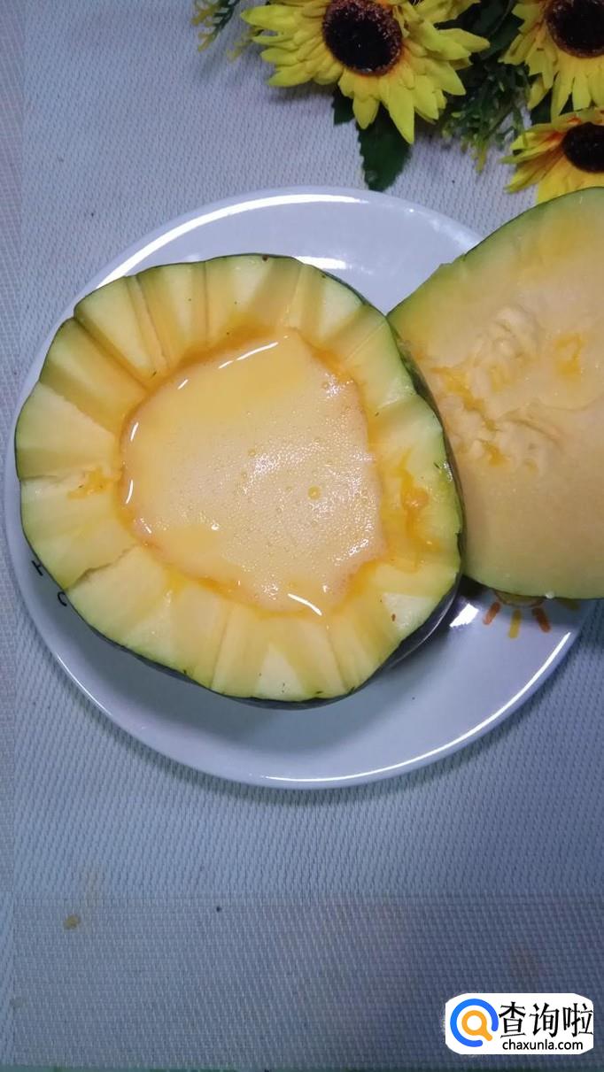 将打好的鸡蛋液倒入南瓜中间的洞里。