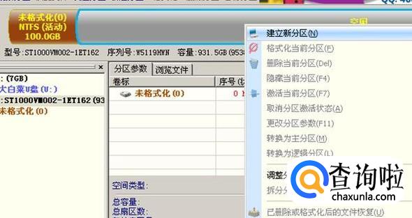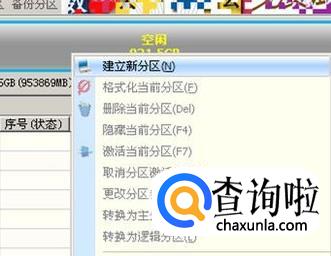 这是软件显示的新硬盘状况,可以看到整个硬盘都没有分区,处于空闲状态,我们在空闲空间上右键单击,在弹出的对话框中点击“建立新分区”