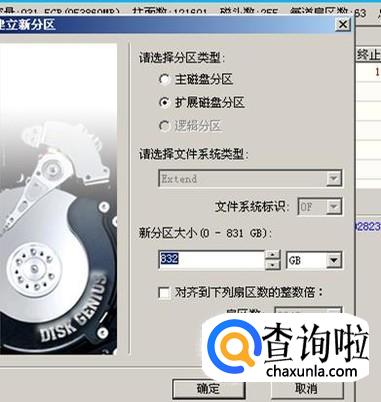 在剩下为划分的空间上右键单击,在弹出的菜单里选“建立新分区”。这次会看到默认分区类型是“扩展分区”,我们点击下面的“确定”。