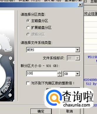 首先要划分安装系统的主分区(就是系统里的C盘),所以在这里先选定“主磁盘分区”,然后在下面的“新分区大小”里输入合适的数字,1T硬盘容量很大,C盘可以划分出100G就可以了,再点下面的“确定”