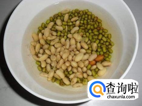 绿豆黄豆洗净,用热水泡制30分钟左右,去水分备用