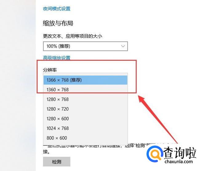 在系统设置界面,即可看到分辨率设置,在这里可以看到系统推荐的分辨率,一般按着系统推荐设置分辨率最佳。