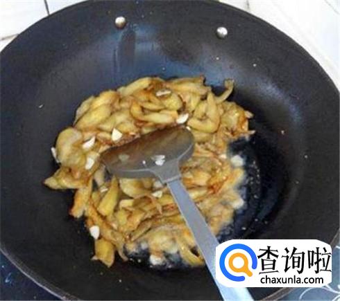 锅里多放点油,烧制七成热,将完全控干水的茄子翻进去过油,直到茄子变软捞出来控干油,锅里的油倒出来,留一点点就行。