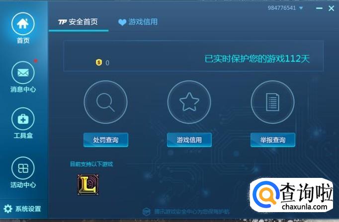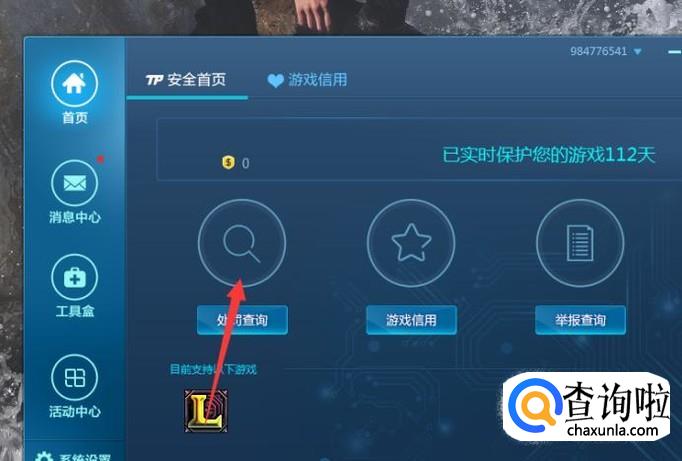 首先你要做的就是登录到腾讯游戏的安全中心如下图。