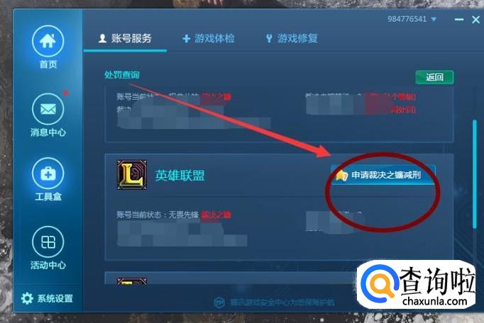 进入之后你会看到最近的被处罚情况,当然我个人账号没有被封号,但是如果封号一天的话,那么也是可以在这里显示并且可以申诉减刑。那么只要你找到减刑之后点击进入