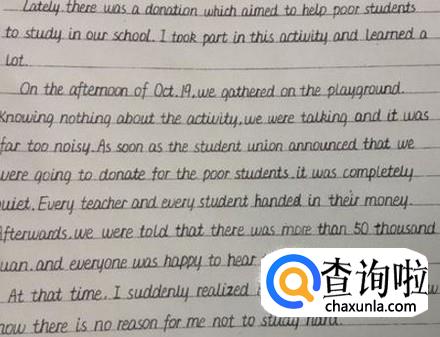 当老师第一眼看到你的答题卡时,不会立马看到你的内容,而是作文的整体情况,包括卷面是否整洁以及书写是否工整,因此为了作文能得高分,则需保持卷面的整洁,并且认真工整地写每一个单词。切忌将单词写的模糊不清难以辨认。