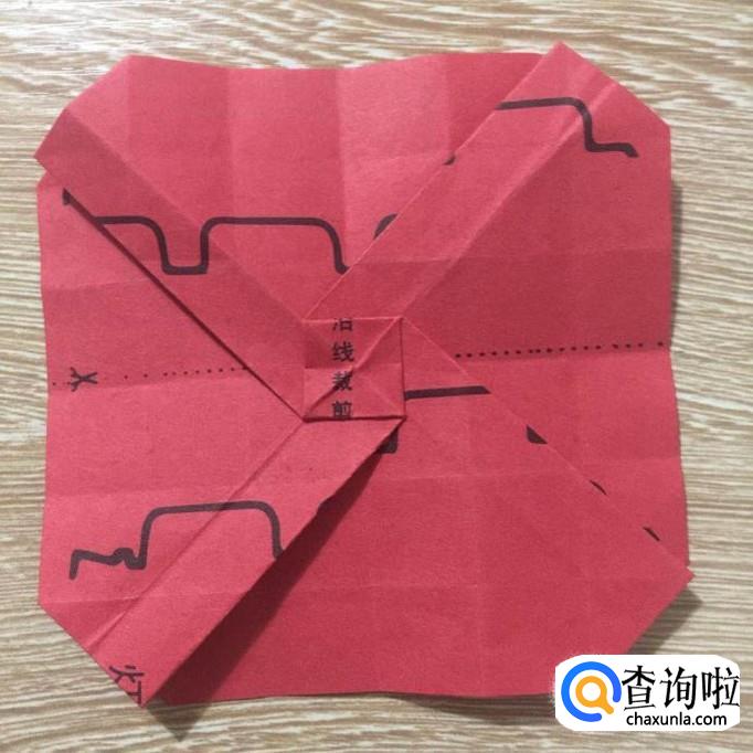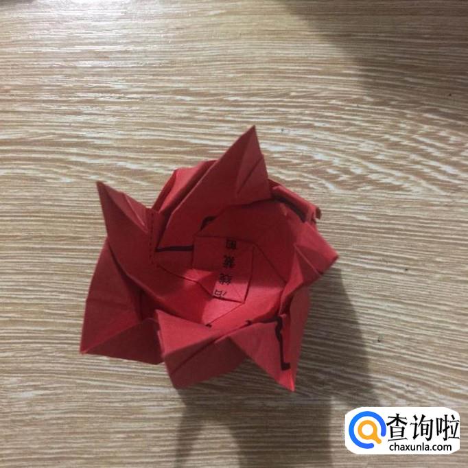 最后将四个角依次插进邻近内部。最后反个面就可以了,一个川崎玫瑰就做好了。