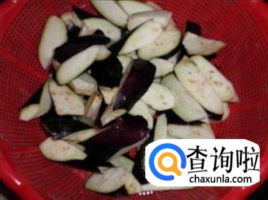 锅中加入适量清水,放上蒸笼。将圆茄子洗净,切成长条。然后,放入蒸笼。