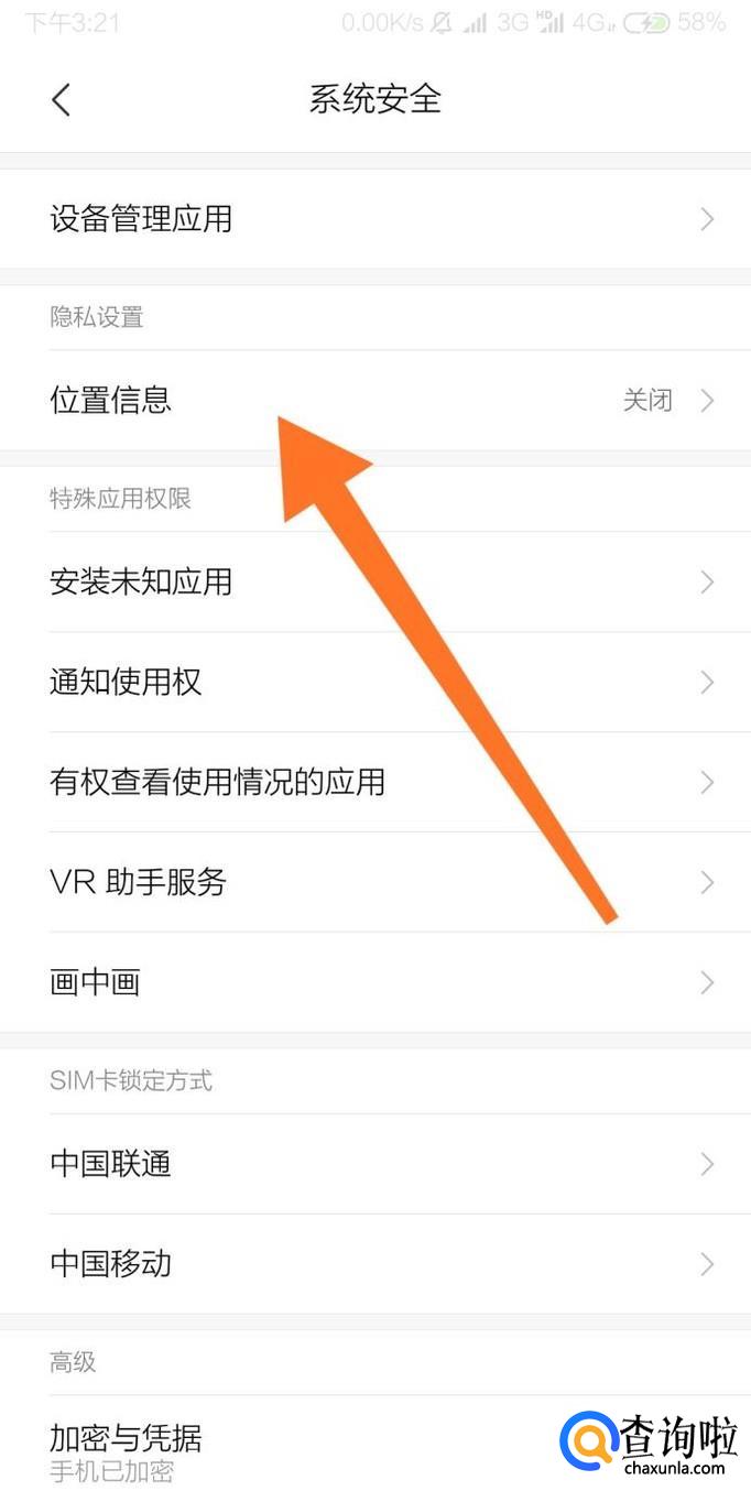 接着找到“位置信息”设置选项,点击进入。