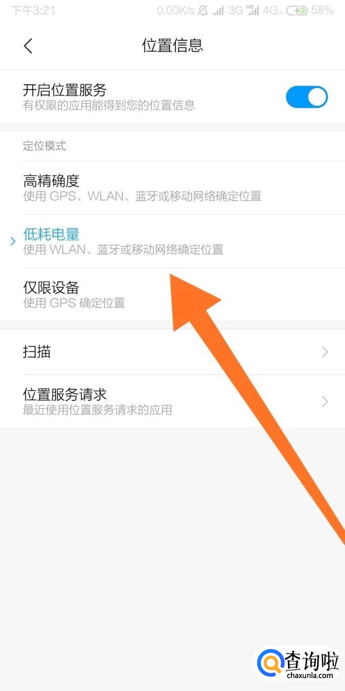 最后开启“打开位置服务”选项即可设置手机的定位模式。