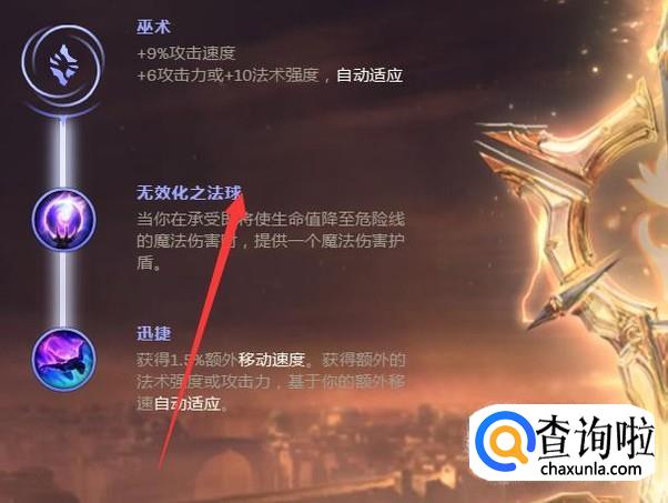 在副系的选择上一般情况选择巫术然后点出无效化法球,防止被对面ap秒掉,另外选择一个迅捷增加自身的移动速度。