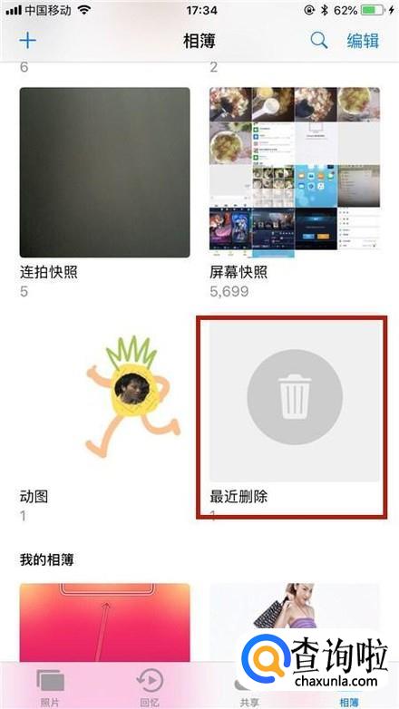 接着点击最近删除,如下图所示。