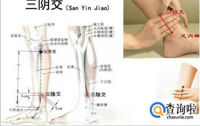 按摩三阴交穴位的作用:对女性来讲经常按摩三阴交穴位是有好处的,三阴交是脾经经穴,因此按摩三阴交可以运化水浊湿毒,可以调理月经,去斑除痘,减少皱纹产生,还可以改善女性的性冷淡,对子宫和卵巢也有很好的保养效果。除此以外,脾胃虚弱,消化不良,腹胀肠鸣,腹泻,月经不调,崩漏,带下,闭经,子宫脱垂,难产,产后血晕,恶露不尽,遗精,阳痿,阴茎肿痛,水肿,小便不利,遗尿,膝脚痹痛,脚气,失眠,湿疹,荨麻疹,神经性皮炎,高血压病、脾胃不好的人也能改善症状。