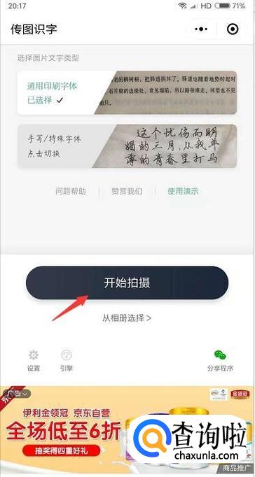 接着我们就可以开始对着书进行拍摄了,还可以在相册选择图片,拍摄好后就会变成字体了。