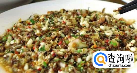 凉拌蚂蚁蛋,这道菜取材于树上的大黄蚂蚁卵,材料不易获得十分珍贵,蚂蚁卵含有丰富的蛋白质,味道鲜美无比,清爽可口。