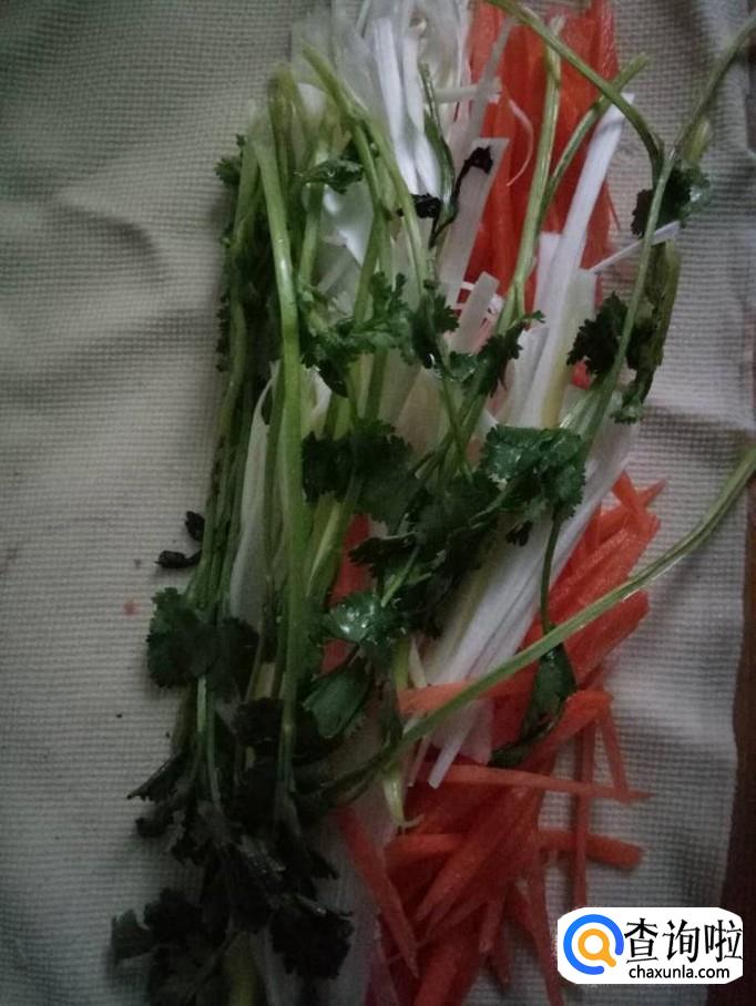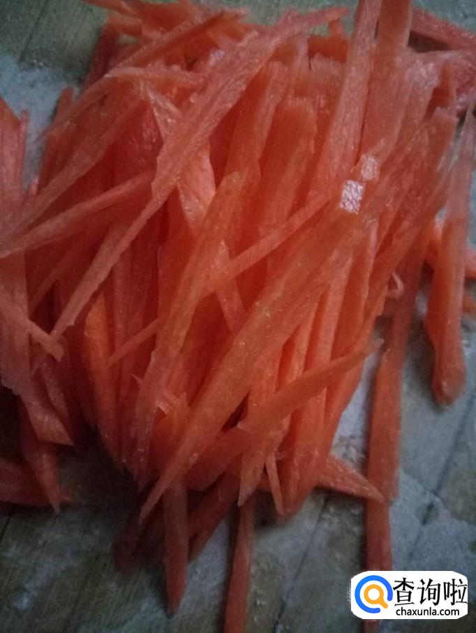 将胡萝卜半根切丝、大葱一根切丝备用。