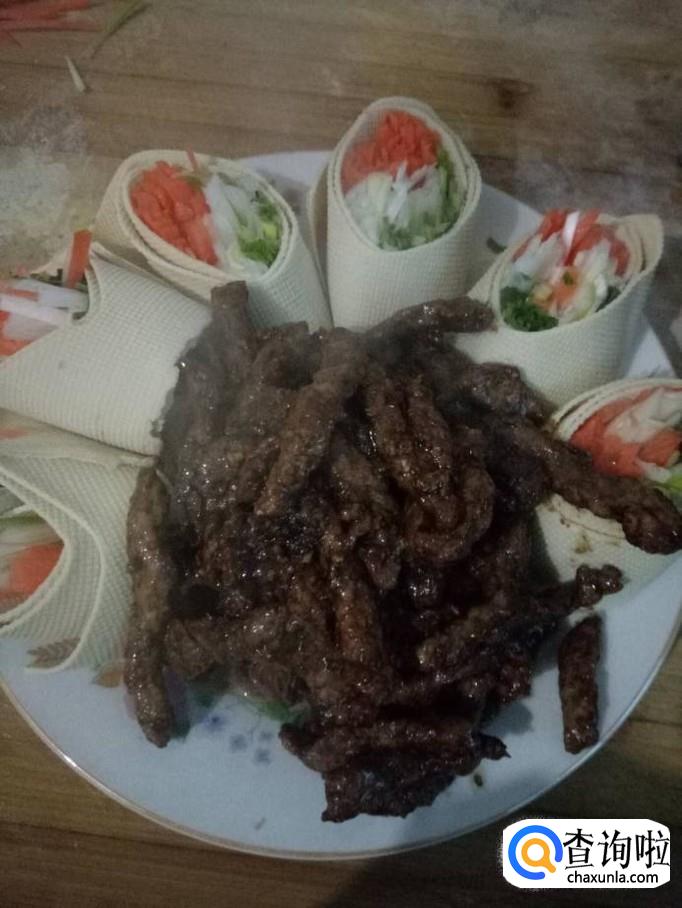 里脊肉、蛋清、豆腐皮、耗油、鸡精、胡萝卜、香菜、大葱、生抽、黄豆酱