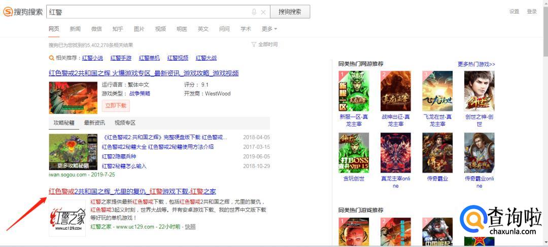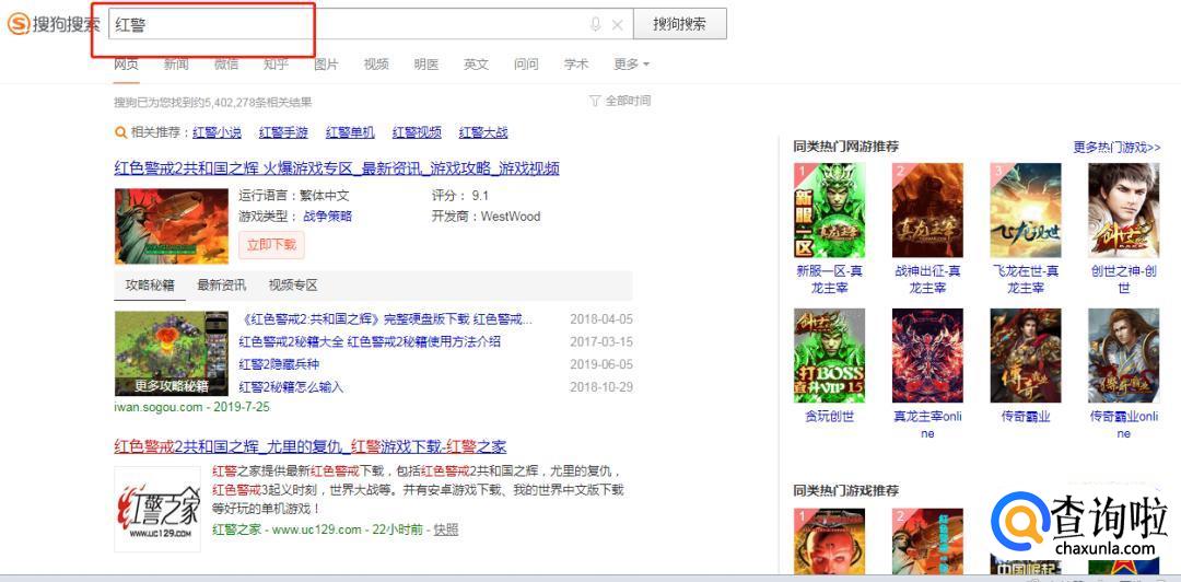 打开搜狗,在输入栏中搜索【红警】。