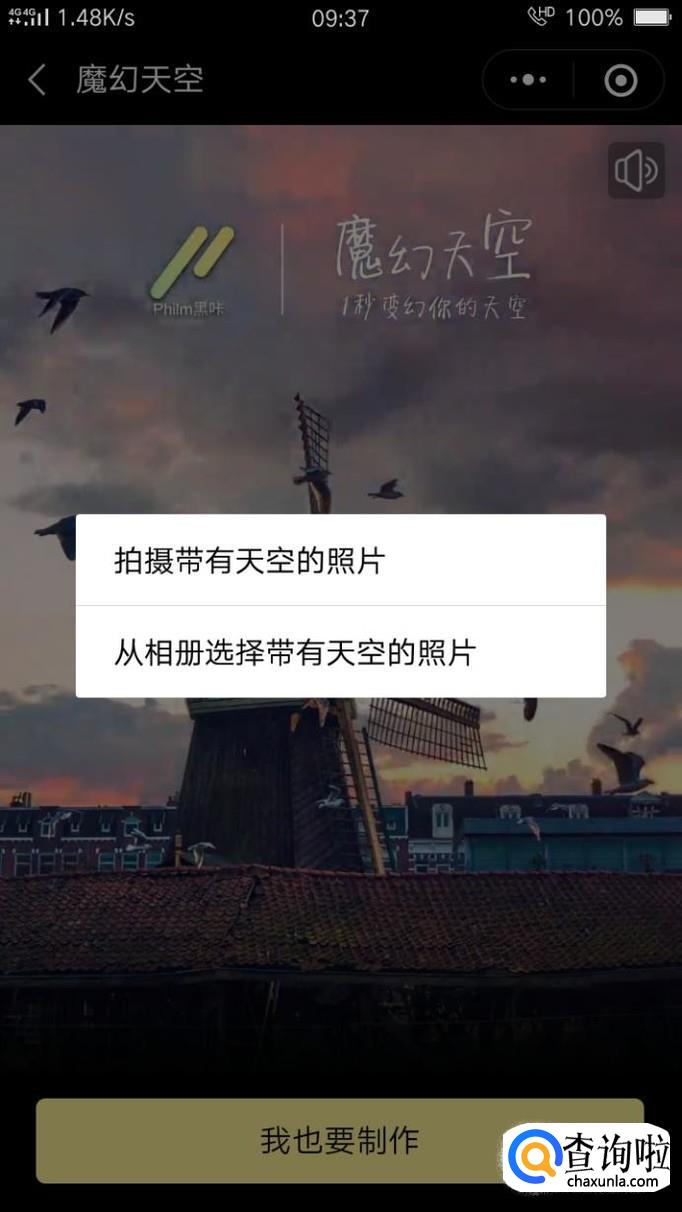 如下图所示,可以选择“从相册中选择带有天空的照片”,随机选择一张想要制作的照片。