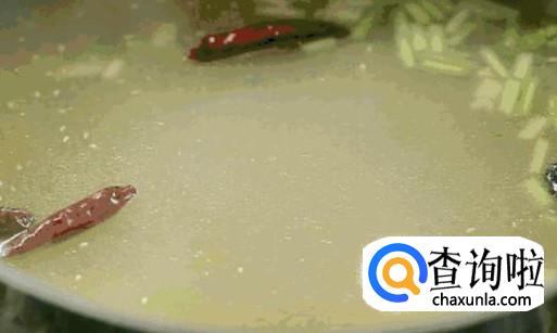 准备一口锅,起锅烧水,水开后放入整鸡,猪大棒骨,小米椒,葱段小火炖煮三十分钟。