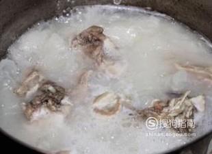 准备一些猪大棒骨,用菜刀敲碎或者宰碎猪骨,这样待会儿熬煮的时候骨髓油才易熬煮出来。
