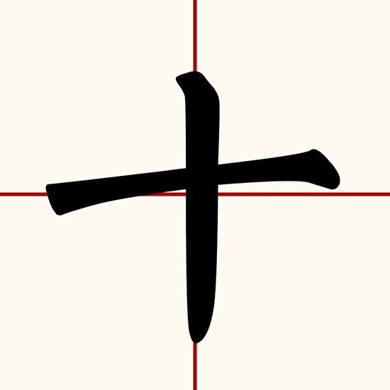 十(拼音:shí)是汉语通用规范一级字(常用字)。此字始见于商代甲骨文。十是数目字,为九加一之和,引申指十倍、十来个。古人认为十是数字完备的标志,所以“十”又表示完备、齐全、达到极点,如十分、十足。又通“什”,指繁杂,如古代的“什锦”也作“十锦”。十加一笔可变成:土、卂、干、士、千、廾、艹字。