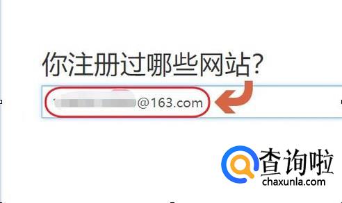 小编以自己的163邮箱号为例,输入之后点击回车键,这样系统就会显示我们注册过的所有网站,下面还会显示这些网站的名称;