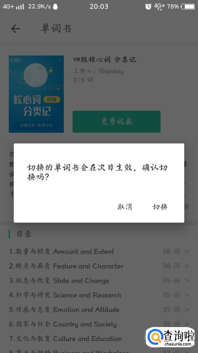 点击之后系统会提示你是否要更换单词书,点击切换之后,再返回首页,你就可以发现自己切换成功了。
