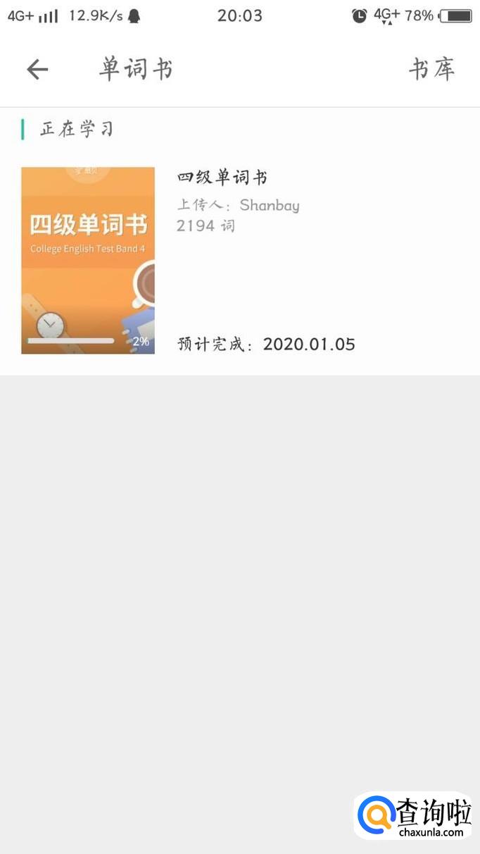 点击单词书之后你就可以看到你现在正在使用的单词书,如果想要更换,就点击书库。