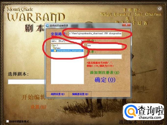 运行修改器,先选择游戏安装路径,语言栏必须填写“cns”,否则会是英文的修改器。确定选择后,再选择游戏版本,这是有时会提示无法识别游戏版本,不用管它,继续运行。