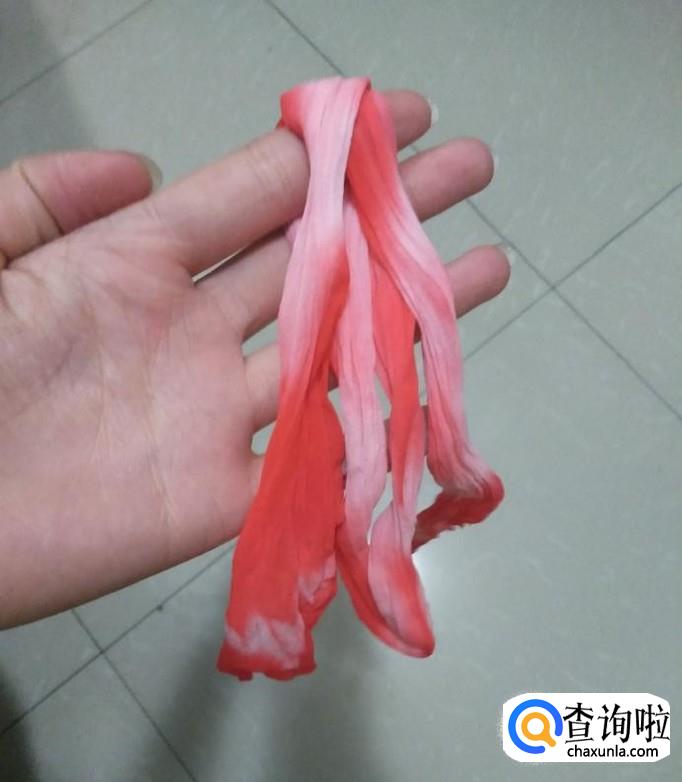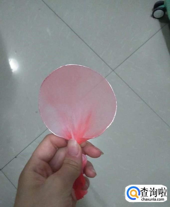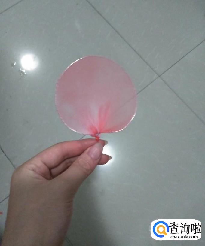选择粉色渐变的丝网,将丝网绷紧在细铁圈上,然后用QQ线将丝网与细铁圈固定,如下图2,然后将多余的丝网剪掉。
