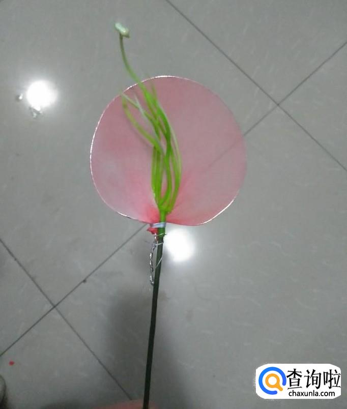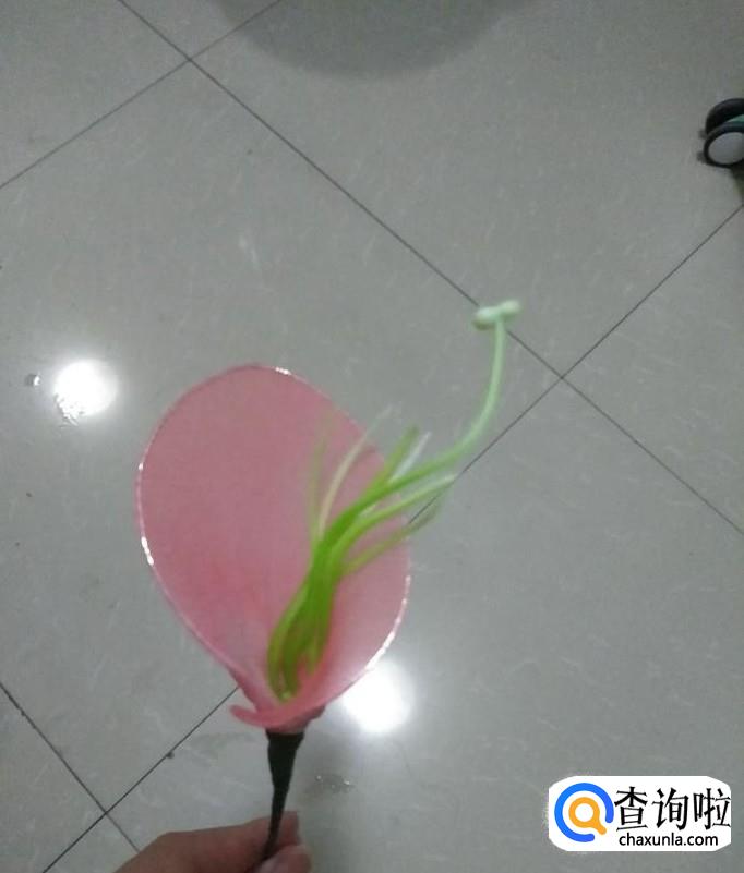 选择一根适量大小的花芯,将其插入花棍中。
