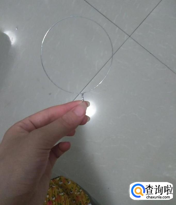 将银色的丝我绷紧在铁圈上,末端同样用QQ线固定,再将多余的丝网剪掉,然后重复操作,再做一个。